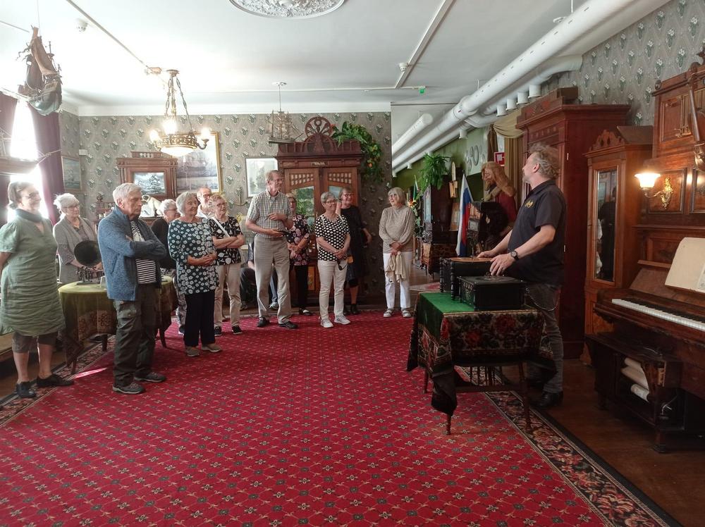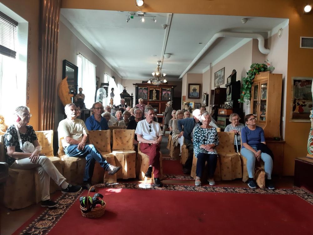 Aloitimme Kuopiossa Saaristokaupunkikierroksella ja lounas laivalla Roll-ristelynä. Lounaan jälkeen ajelimme Puijolle, näkötornissa käynti. Majoittuminen Sokos Hotelli Puijonsarveen, minkä lähellä Tuomiokirkko ja sen yhteydessä kaunis Snellman puisto. Torstaina 4.8. tutustuimme ortodoksimuseo Riisaan, sieltä lähtö Varkauteen, missä maittava lounas ravintola Kaks Ruususessa. Todellinen aikamatka, kun kävimme Mekaanisen musiikin museossa. Kuvat: Sinikka Hakala, Kalle Sistola, Ulla Kartano ja Sirkka Laurila