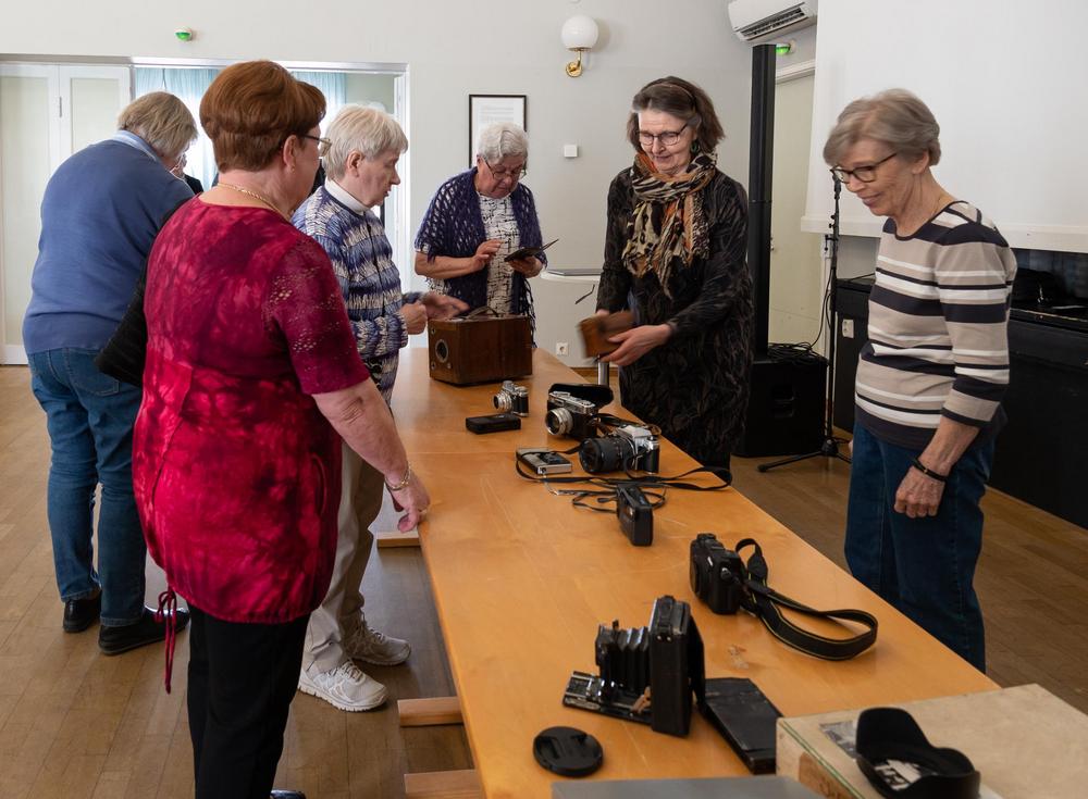 Tapaamisen teemana oli valokuvaus. Heinoset kertoivat sanoin ja kuvin valokuvausharrastuksestaan ja valottivat hieman myös valokuvauksen historiaa omalta osaltaan. Näytillä oli muutama vanha kamera, vanhin oli vuodelta 1897 ja sillä kuvattiin lasilevylle.