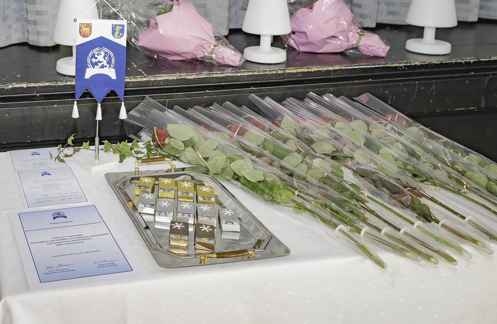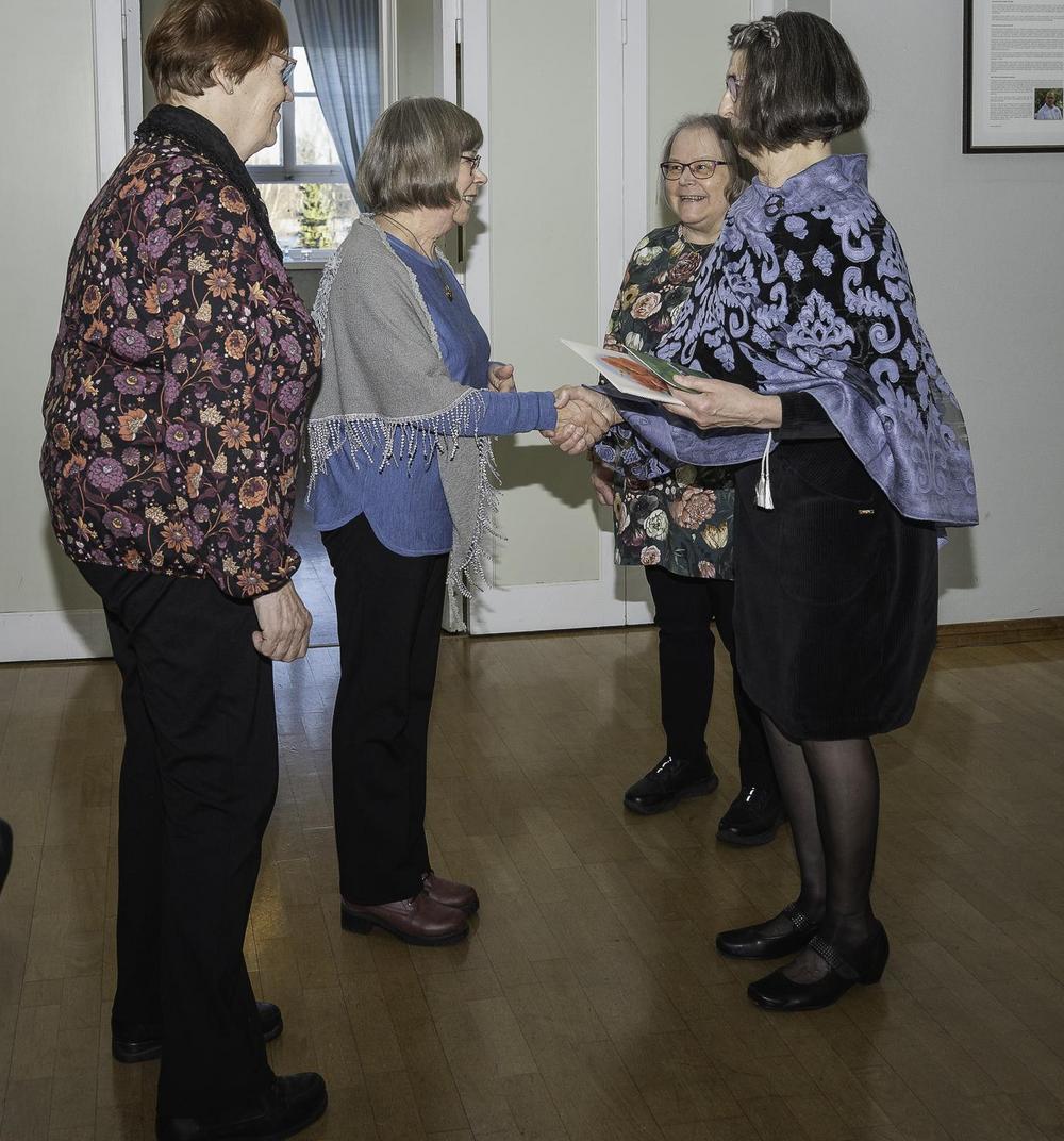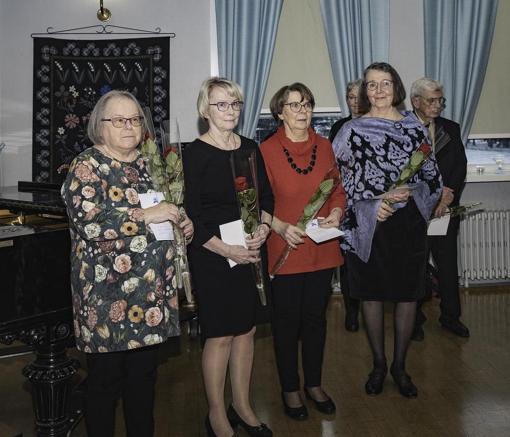 Hopeinen ansiomerkki jaettiin Marja-Riitta ja Pertti Heinoselle, Ulla Kartanolle, Sirkka Laurilalle ja Merja Vilénille. (Pertti Heinonen puuttuu kuvasta.)
