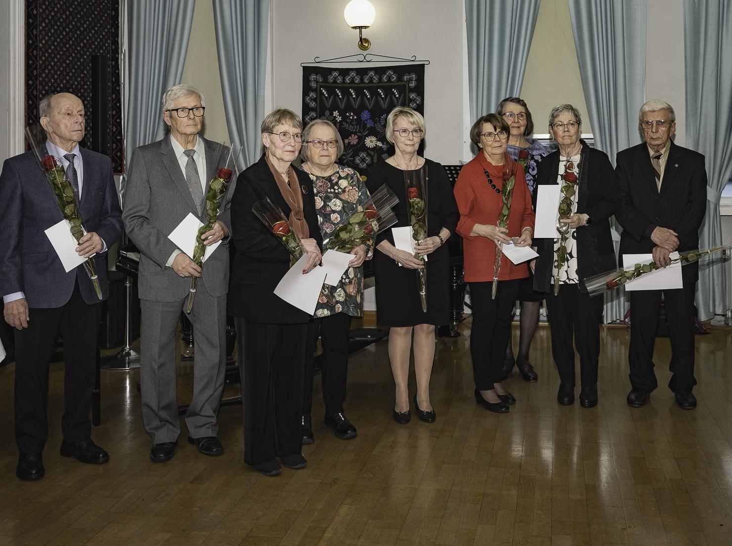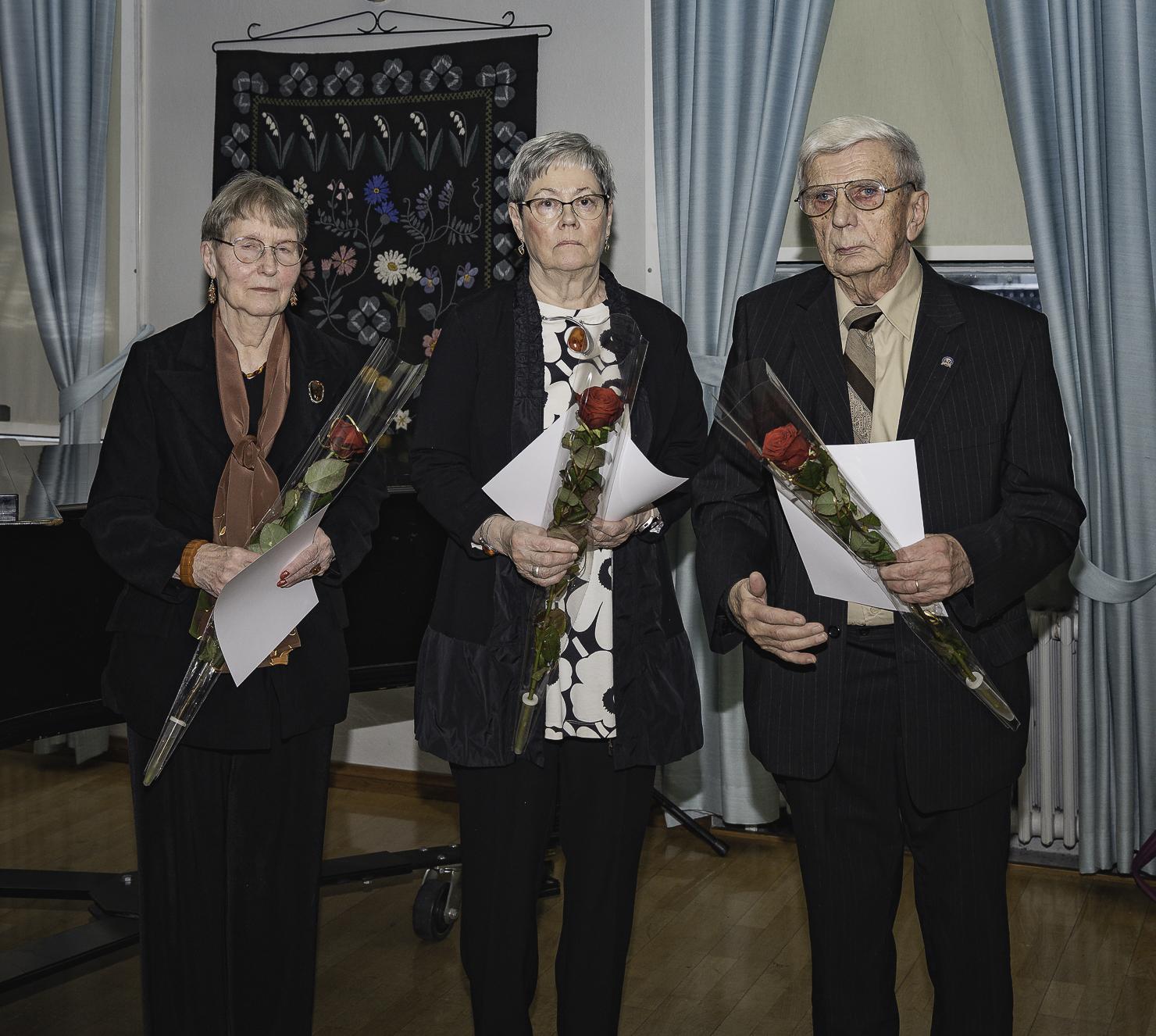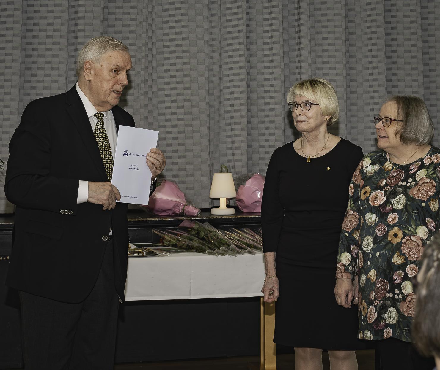 Hopeinen ansiomerkki jaettiin Marja-Riitta ja Pertti Heinoselle, Ulla Kartanolle, Sirkka Laurilalle ja Merja Vilénille. (Pertti Heinonen puuttuu kuvasta.)