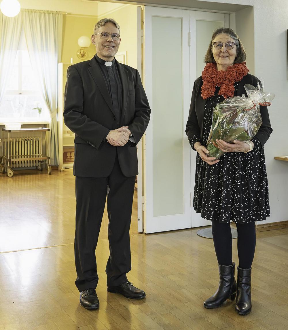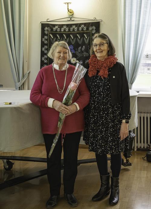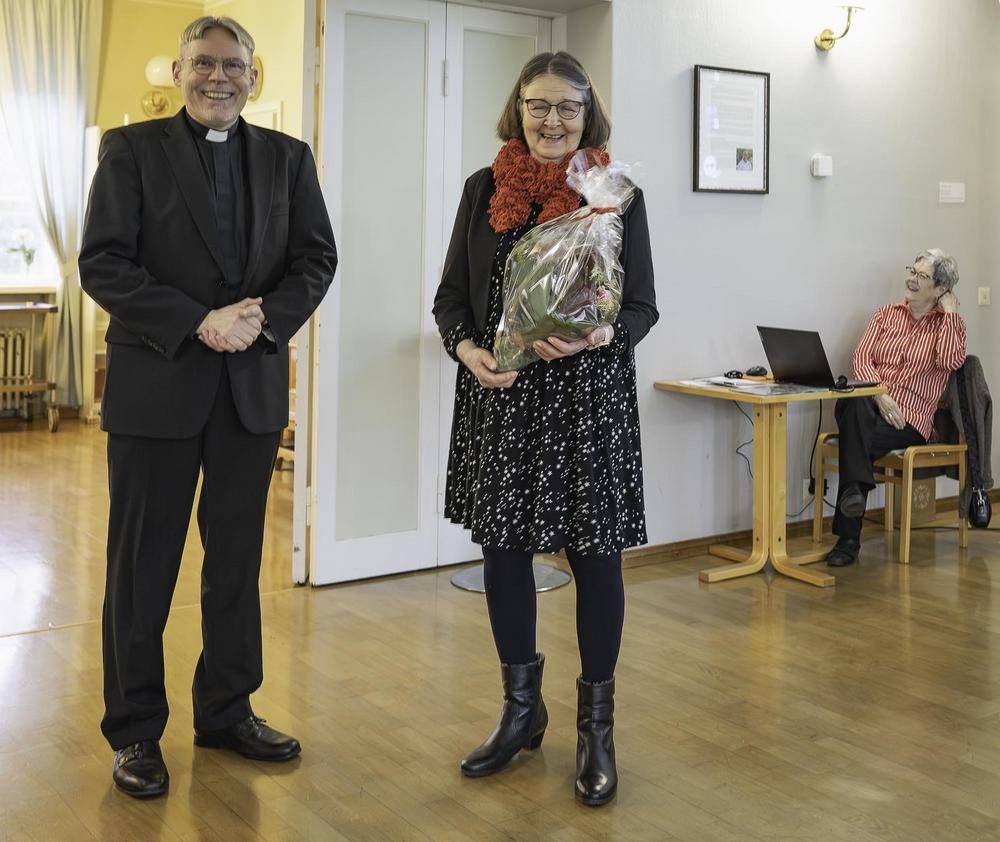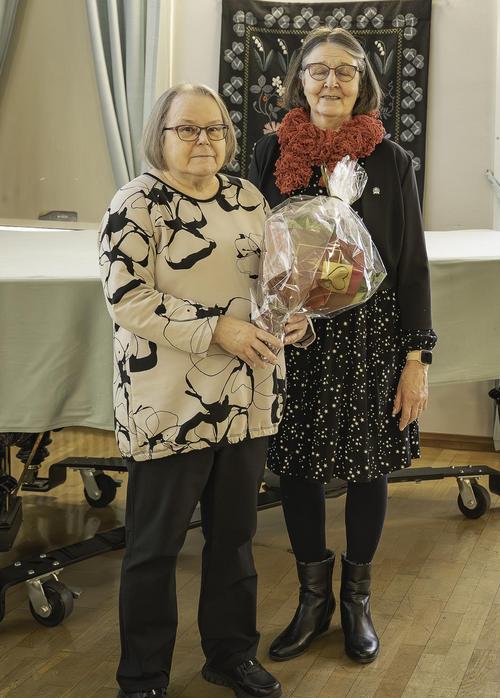Marja-Riitta Heinoselle ojennettiin kukat hänen jättäessään yhdistyksen sihteerin tehtävät.