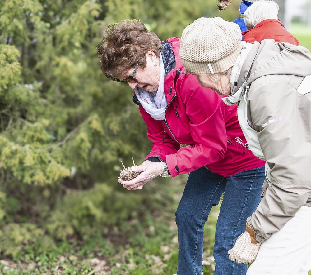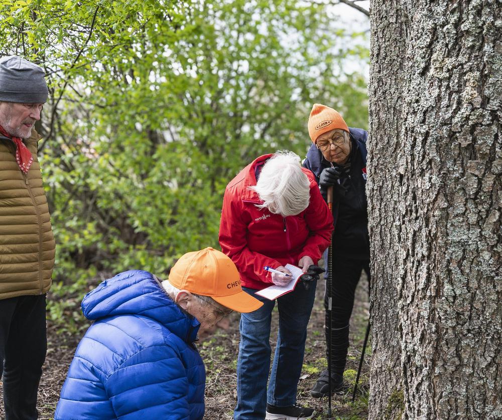Sitten olikin suunnistuksen vuoro. Puiston puihin oli sidottu seitsemän rastia visaisine kysymyksineen. Kahdeksas rasti oli toimintarasti. Rastilla jokaisen ryhmän piti rakentaa käpylehmä. Yhdeksäs rasti oli myös toimintarasti. Tehtävänä oli kiertää lyhyt lenkki, jonka varrelta piti bongata keltavuokko esiintymä. Jotkut löysivät kolme eri keltavuokko esiintymää.