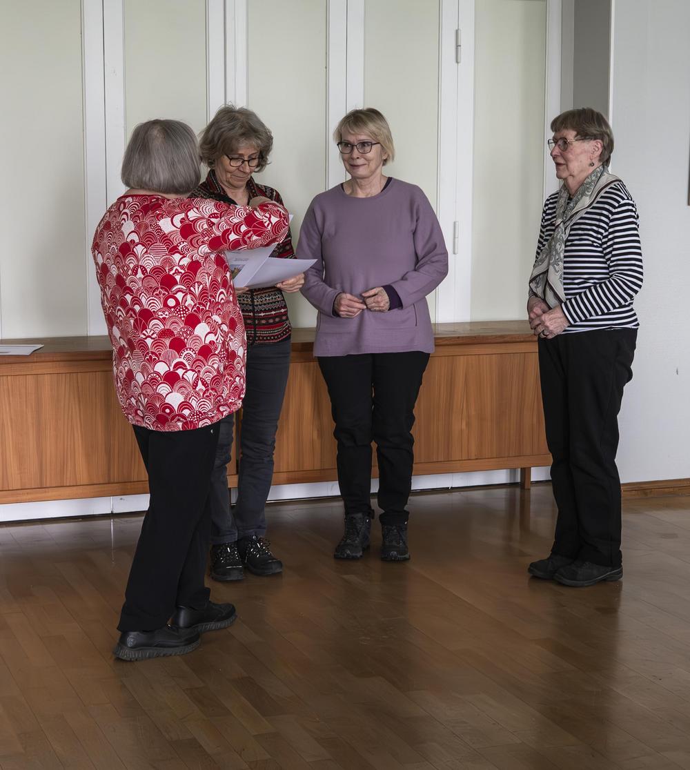 Mutta kun Marja Koskinen johdatti meidät alkuveryttelyyn, tuuli muuttui leppeämmäksi ja aurinko tuli esiin pilvien varjosta. Tiedä sitten oliko alkuveryttely niin tehokas vai muuttuiko ilma todella lämpöisemmäksi, mutta lämmin meille tuli.