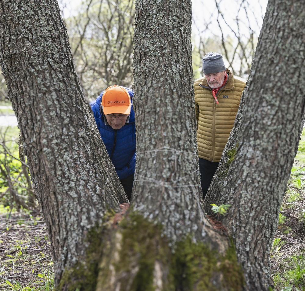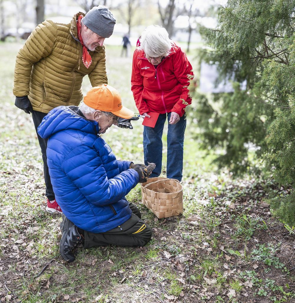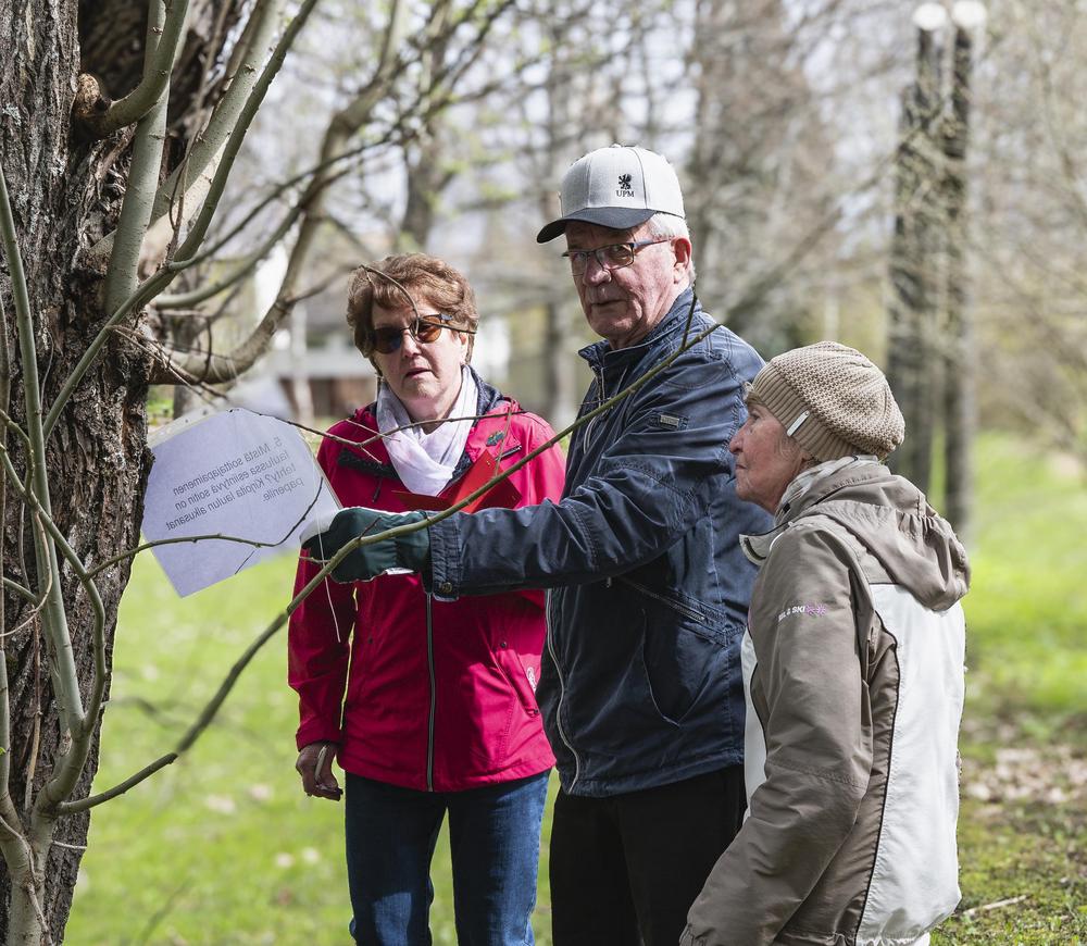 Hieman sataa tihutteli ja tuulikin puhalsi kylmää viimaa pohjoisesta, kun valmisteltiin rasteja puiston puihin.